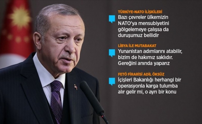 İçişleri Bakanı Süleyman Soylu'nun FETÖ firarisi Adil Öksüz'e ilişkin açıklamalarını değerlendiren Erdoğan, "İçişleri Bakanlığı'mız yapılacak herhangi bir operasyonla karga tulumba alır gelir mi, o ayrı bir konu." dedi.