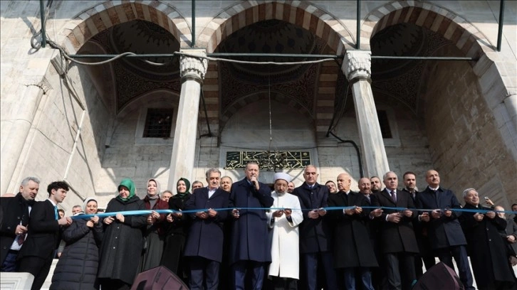 Osmanlı Padişahı 3. Murad'ın eşi Safiye Sultan tarafından başlatılan Eminönü'ndeki Yeni Cami inşaatının 1665'te Sultan 4. Mehmed'in annesi Hatice Turhan Sultan tarafından tamamlandığını anlatan Erdoğan, caminin restorasyonu hakkında şu bilgileri verdi: