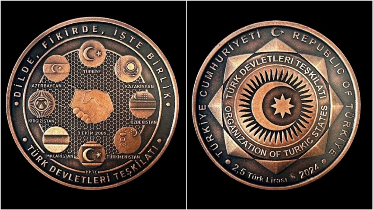 Hatıra paranın bir yüzünde ise Türk Devletleri Teşkilatı'nın bayrağı ve ismi ile kuruluş tarihi olan 3 Ekim 2009 ibaresi bulunuyor.