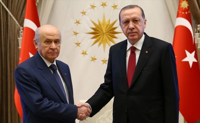 Erdoğan, "Ne güzel; Sayın Bahçeli, Ankara'daki temsilcilerle geniş bir toplantı yaptı. Biz de şimdi değerlendirmelerini ayrıca yapırız. Zaten bizim de gündemimizde görüştüğümüz, konuştuğumuz başlıklar. İnşallah ondan sonra da ülkemiz milletimiz için hayırlı olan adım ne ise o adımları atarız." ifadesini kullandı.