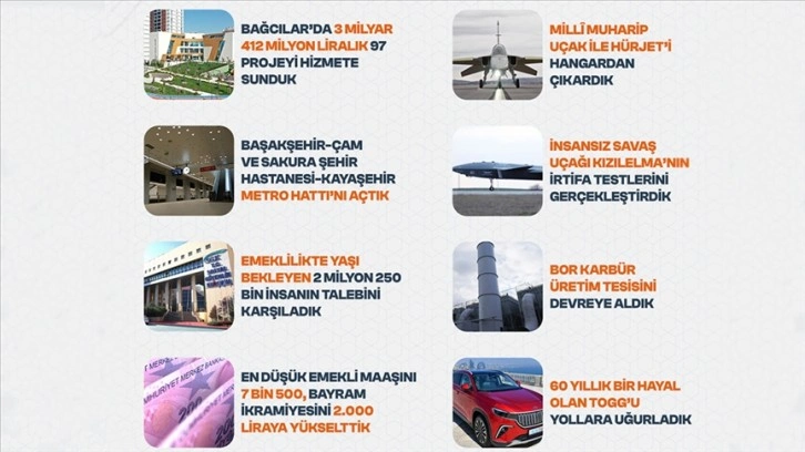 "Bağcılar'da 3 milyar 412 milyon liralık 97 projeyi hizmete sunduk. Milli Muharip Uçak ile Hürjet'i hangardan çıkardık.