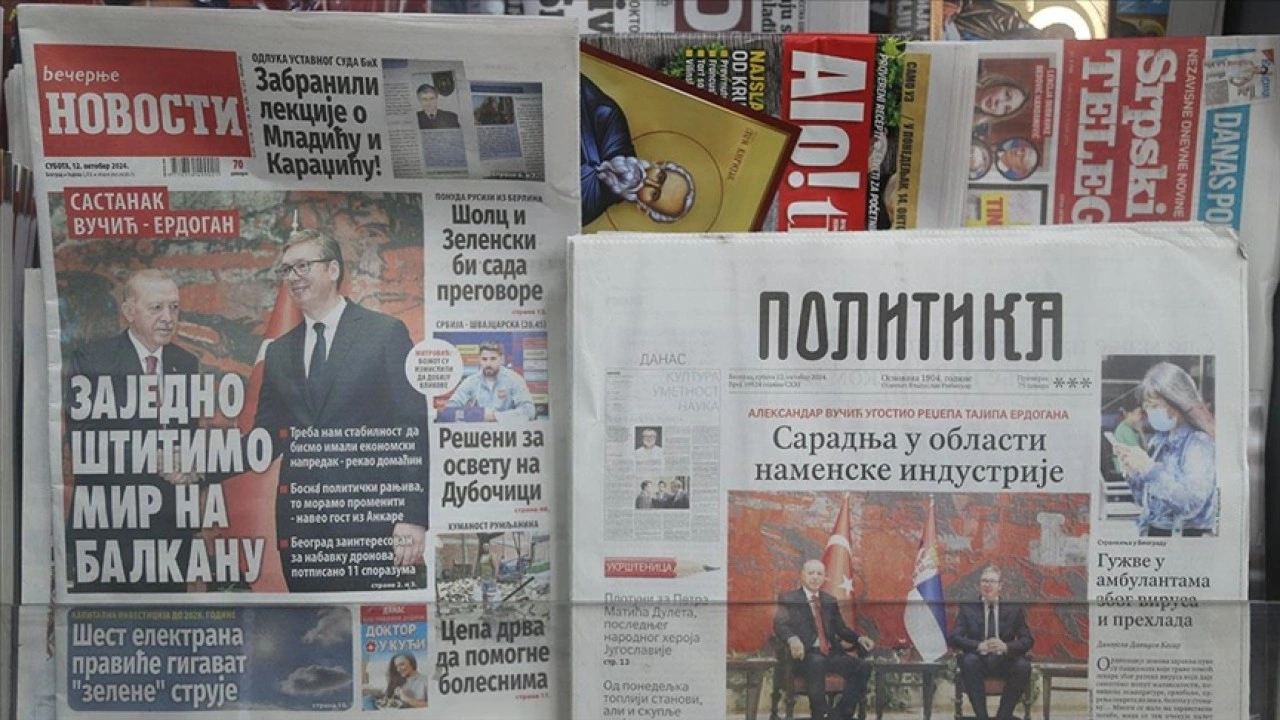 Manşetlere taşınan ziyarete ilişkin "Novosti" gazetesi Cumhurbaşkanı Erdoğan ve Sırp mevkidaşı Aleksandar Vucic'in fotoğrafına yer vererek, "Balkanlarda barışı beraber koruyoruz" başlığını kullandı.