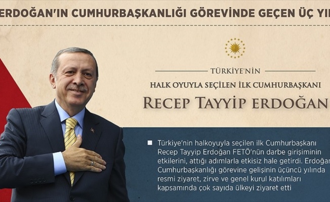 Türkiye'nin halkoyuyla seçilen ilk Cumhurbaşkanı Recep Tayyip Erdoğan, görevinin "üçüncü" yılında Fetullahçı Terör Örgütü'nün (FETÖ) gerçekleştirdiği darbe girişiminin etkilerini, attığı adımlarla etkisiz hale getirdi. Erdoğan, anayasa değişikliği halk oylamasının ardından kurucusu olduğu AK Parti'nin genel başkanlığı görevine ikinci kez seçildi.