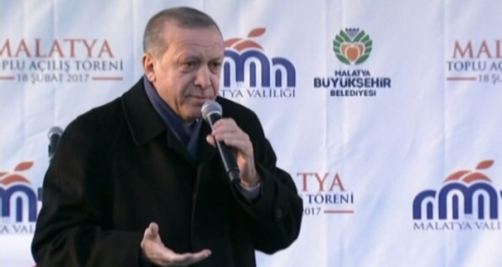 Cumhurbaşkanı Recep Tayyip Erdoğan, TBMM Başkan Vekili Ahmet Aydın, Başbakan Yardımcısı Veysi Kaynak, Gümrük ve Ticaret bakanı Bülent Tüfenkci, Ulaştırma, Denizcilik ve Haberleşme Bakanı Ahmet Arslan, TBMM Ak Parti Genel Başkan Yardımcıları Öznur Çalık, Hayati Yazıcı ve Cevdet Yılmaz ile birlikte Malatya’ya geldi. Malatya Yeni Belediye binası yanındaki meydanda konuşan Cumhurbaşkanı Recep Tayyip Erdoğan, “Konuşmamın başında El Bab’ı DEAŞ’ın katil sürülerine dar eden kahraman mehmetçiklerimizi selamlıyorum. Onlar gece gündüz, istikbal ve istiklali için canlarına ortaya koyuyorlarsa, biz de taş üstüne taş koymanın mücadelesini veriyoruz. Dünyanın dört bir yanında bayrağımızı yükseltmenin yollarını arıyoruz. Bahreyn’e Suudi Arabistan’a, katar’a gittik, hep bu mücadele” dedi.