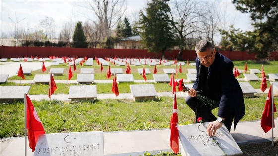 Cumhurbaşkanı Yardımcısı Oktay, daha sonra şehitlerin mezarlarına karanfil bıraktı.