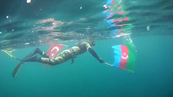 Aydınhan, daha sonra Türk ve Azerbaycan bayraklarıyla dalış gerçekleştirdi.