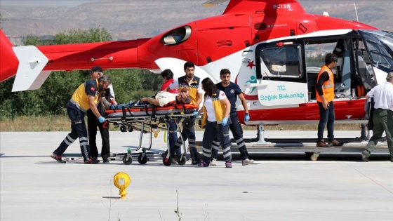 Sivas'ın Zara ilçesinde gezinti için çıktığı dağda düşerek ayağını kıran Medet Öztürk, ambulans helikopter ile hastaneye kaldırıldı.