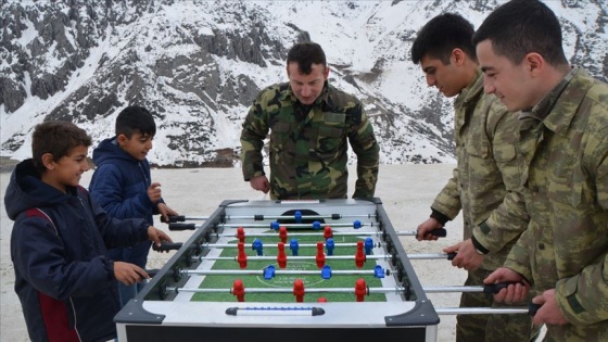 Görevliler, okulun bahçesi olmadığı için etkinliklerini bin 500 rakımlı Dağlıca Hudut Taburundaki helikopter pistinde gerçekleştirdi.