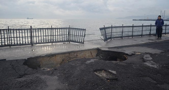 Akşam saatlerinde hızı zaman zaman 100 kilometreye çıkan fırtına nedeniyle bir anda etkisini artıran dalgalar yaklaşık 6 metreye kadar ulaştı. Dalgaların kıyıyı dövmesiyle sahil kenarlarını su basarken, bazı yerlerde denizin kenar korkulukları koptu.