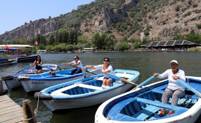 Çandır Mahallesi'nde yaşayan ve Ortaca ilçesinde çalışanları karşıya taşıyan kadınlar, günün ilerleyen saatlerinde ise 2 bin 500 yıllık Kaya Mezarları ve Kaunos Antik Kenti'ni görmek isteyen turistleri taşıyor.