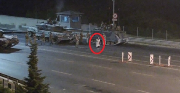 Görüntülerde kahraman kadın, korkusuzca köprüde askerlerin üzerine yürüyor. El kol hareketleriyle tepki gösteren kadın, askerlerin yanına geliyor. Bir süre sonra asker arkasını dönen kadına bir asker müdahale ediyor. Askerlerden bazıları bu sırada havaya ateş açarken, bir asker de kadını iterek uzaklaştırmaya çalışıyor. Darbeci bir asker ise kadının elindeki telefonu alarak fırlatıyor.