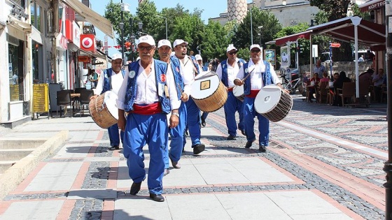 Pehlivanlarla er meydanı çayırına çıkana kadar davetlerini sürdürecek davul zurna ekibi, Edirne Belediyesi önünde gösteri yaptı.