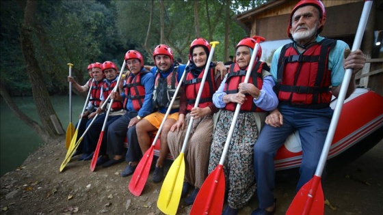 Düzce'de Dünya Yaşlılar Günü dolayısıyla düzenlenen etkinlikte, yaşları 65 ila 80 arasında değişen köy sakinleri Melen Çayı'nda rafting yaptı.