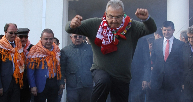 Eski Cumhuriyet Halk Partisi (CHP) Genel Başkanı ve Antalya milletvekili Deniz Baykal, ilerlemiş yaşına rağmen yanan Nevruz ateşi üzerinden atlayarak gençlere taş çıkarttı.