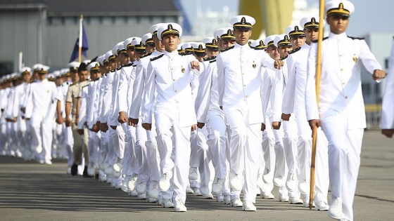 Konuşmanın ardından tören geçişi yapan öğrenciler, Çimariva selamlaması yapmak üzere koşar adımlarla gemiye çıktı. Selamlamanın ardından TCG Bayraktar gemisi hareket etti.