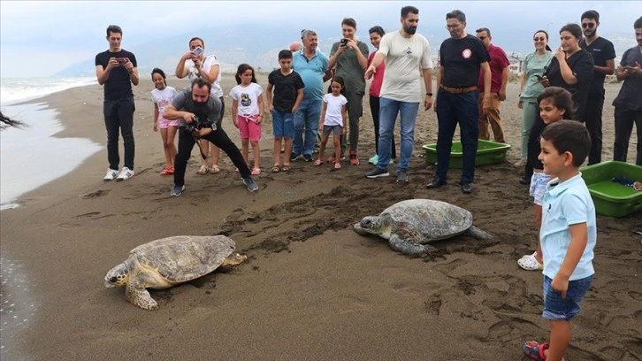 Hatay'da arka yüzgeçlerinden yaralanan yeşil deniz kaplumbağası "Mavi" ile hasta ve bitkin bulunan caretta caretta "Deniz", Hatay Mustafa Kemal Üniversitesi (HMKÜ) Deniz Kaplumbağaları İlk Yardım ve Tedavi Merkezi'ndeki (DEKİYM) tedavilerinin ardından maviliklere uğurlandı.