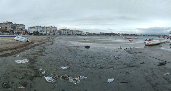 Tekirdağ'ın Maramaraereğlisi ilçesinde deniz yaklaşık 20 metre çekildi.