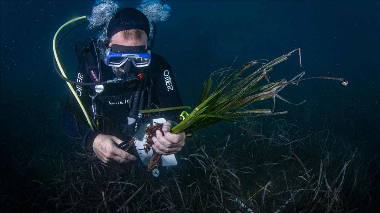 Bilim insanları, İzmir'in Karaburun ilçesi açıklarında çalışma yapıyor. TÜBİTAK 1001 Bilimsel ve Teknolojik Araştırma Projeleri kapsamında desteklenen çalışma ile posidonia oceanica deniz çayırlarının iklim değişikliğiyle mücadelede katkısının ortaya konulması hedefleniyor.