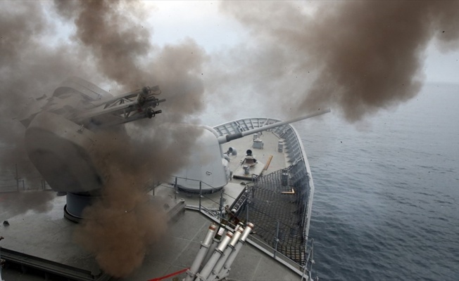 Kuzey Ege'de gerçekleştirilen hava savunma atışlarında, tehdit oluşturan ve farklı açılardan savaş gemilerine yaklaşan, güdümlü mermi profili çizen drone'a atışlar gerçekleştirildi.