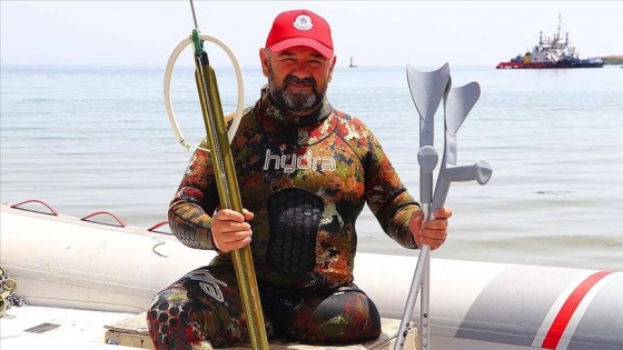 Tekirdağ'da arkadaşının kazara tüfekle vurması sonucu sol bacağını kaybeden Gökhan Koç, hobi olarak başladığı zıpkınla serbest dalışta ilerleyerek diğer engellilere de azmiyle örnek oluyor.