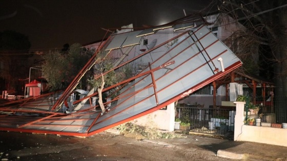 Denizli'nin Merkezefendi ilçesinde etkili olan lodos nedeniyle bir evin çatısı uçtu, iki araç zarar gördü.