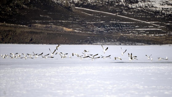 Ardahan'ın Çıldır ilçesine bağlı Akçakale köyü mevkiinde yazın konakladıkları adalar bölgesine gelen martılar, gölün üzerinin halen tamamen buz ve karla kaplı olması sebebiyle yiyecek bulmakta güçlük çekiyor.