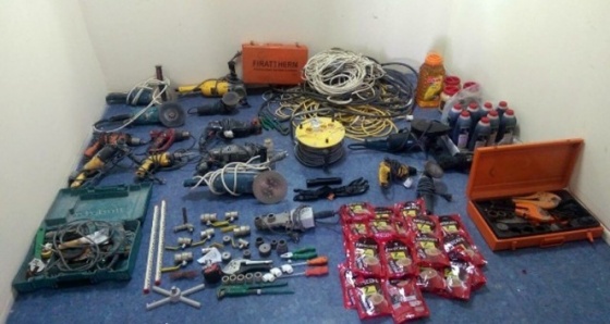 Denizli İl Emniyet Müdürlüğü Asayiş Şube Müdürlüğü Hırsızlık Büro Amirliği ekipleri, Pamukkale ilçesi Zeytinköy Mahallesinde bir depodan inşaat malzemesi çalan hırsızları yakalamak için çalışma başlattı. Depodan matkap, spiral başta olmak üzere elektronik inşaat ve el aletleri çalan hırsızlar için çevredeki güvenlik kameralarını inceleyen ekipler, şahısları tespit etti. Bunun üzerine harekete geçen ekipler, tespit edilen adrese baskın düzenledi. Operasyon kapsamında evde ve hırsızların kullandığı araçta yapılan aramada çalınmış, inşaat ve gıda malzemeleri ele geçirildi.