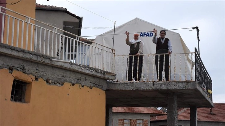 Depremlerde ahırları ağır, evleri ise az hasar alan Karacan çifti, Afet ve Acil Durum Yönetimi Başkanlığınca (AFAD) verilen çadırı, yakınlarının da yardımıyla iki yıl önce yaptıkları ve sadece dört kolonu bulunan tek katlı yapının üstüne yerleştirdi.