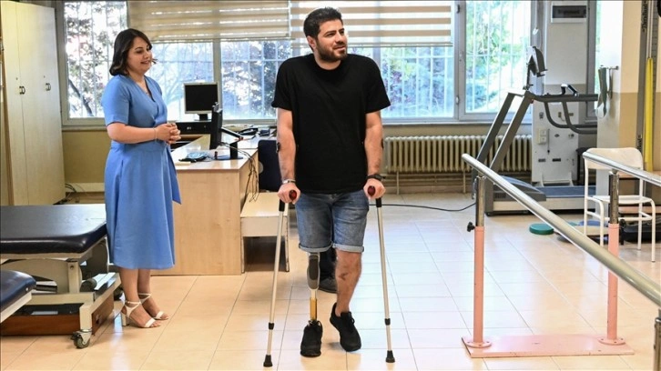 Kahramanmaraş merkezli depremlerde enkaz altında kalan ve sağ bacağı ampute edilen 35 yaşındaki Mustafa Cezayiroğlu, Hacettepe Üniversitesi Fizik Tedavi ve Rehabilitasyon Fakültesi'nde yapılan protez sayesinde 5 ay sonra yeniden ayağa kalktı.