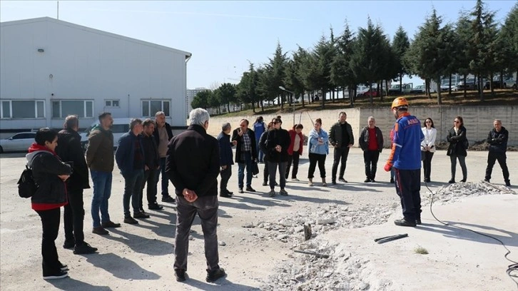 Samsun'dan eğitime katılan gönüllü öğretmenler, AFAD İl Müdürlüğünün tatbikat alanında uzmanlardan afet durumunda organizasyon, çadır kurma, arama-kurtarma, psiko-sosyal destek, yangın söndürme, ilk yardım gibi konuları uygulamalı eğitim alarak olası depremlere hazırlanıyor.