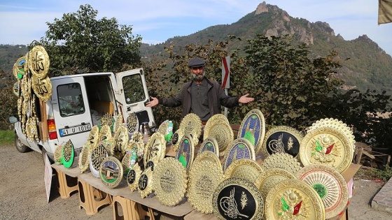 Marmara depreminde Gebze'deki iş yeri yıkılan Naci Altuntaş, memleketi Ordu'da ahırdan dönüştürdüğü atölyede hazırladığı hediyelik eşyaları karayolu kenarına kurduğu tezgahta satarak geçimini sağlıyor.