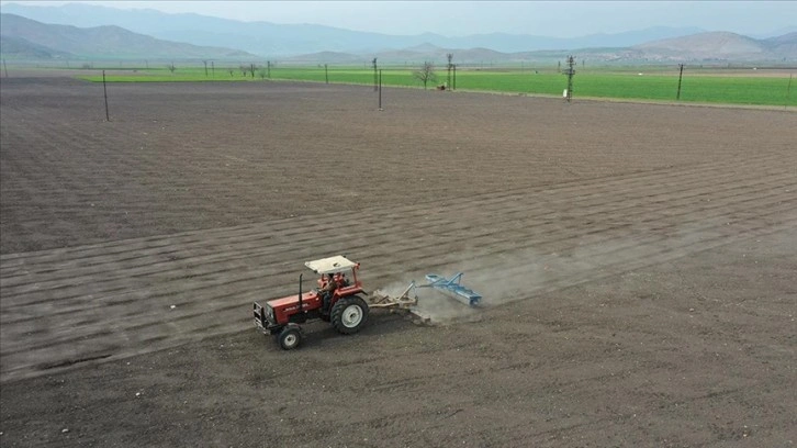 Depremle çalışmalarına ara vermek zorunda kalan çiftçiler, ilkbahar aylarında gerçekleştirilen ekim, sulama ve gübreleme işlemlerini sürdürüyor.