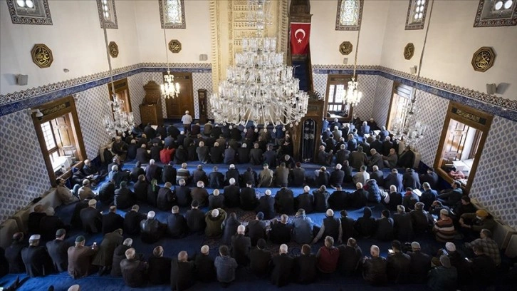 Edirne Eski Cami'de cuma namazı öncesi düzenlenen programda okunan Kur-an'ı Kerim'in ardından, depremde yaşamını yitirenler için dua edildi.
