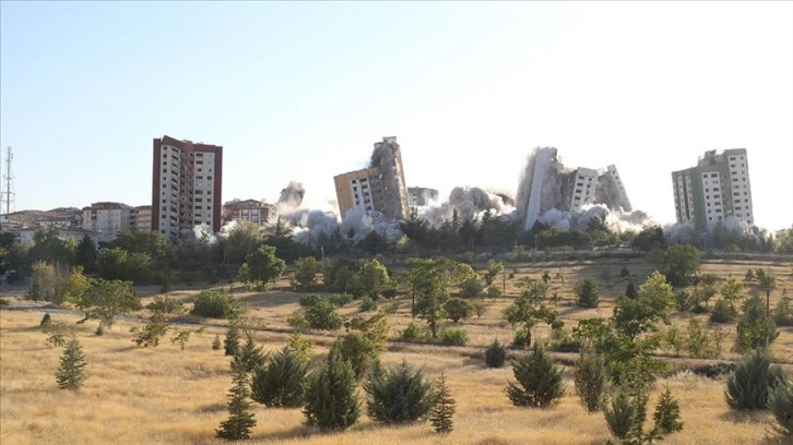 Yeşilyurt ilçesi Yeşiltepe Mahallesi'ndeki 15 katlı 9 binanın yıkımında ise patlatma yöntemi kullanıldı.