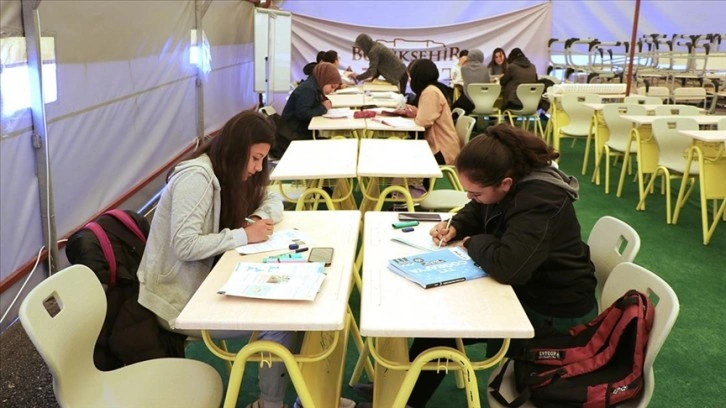 Birçok branşta öğretmen bulunan eğitim çadırından yararlanan gençler, geleceklerine yön verecek sınavda başarılı olmak için çalışıyor.