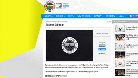 Fenerbahçe Kulübü, Süper Lig'in 11. haftasında Galatasaray'a konuk oldukları derbi maçı izlemeye gelen bir taraftarının, geçirdiği kalp krizi sonucu hayatını kaybettiğini duyurdu.