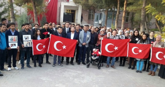 Mardin'in Derik ilçesinde sivil toplum kuruluşları, Derik Kaymakamı Muhammed Fatih Safitürk’ün şehit edildiği terör saldırısını lanetledi. Ellerinde Türk bayrakları ile Derik Kaymakamlığı önünde bir araya gelen kalabalık grup, PKK'lı teröristlerin saldırısı sonucu şehit olan Derik Kaymakamı Muhammed Fatih Safitürk için yazdığı mektupları kaymakamlığın ön kapısına astı.