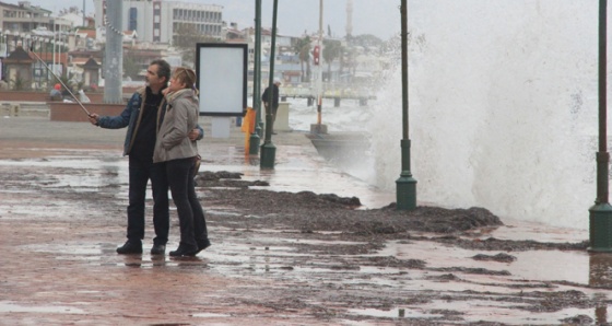 Dev dalgalar sahili dövdü, vatandaşlar selfie çekti
