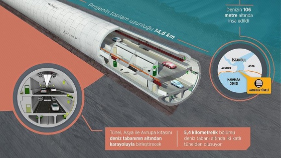 İstanbul'un ulaşım sorununa köklü çözüm üretecek tünelin hizmete alınmasıyla İstanbul'un iki yakası arasındaki mesafe, 15 dakikada geçilebilecek.