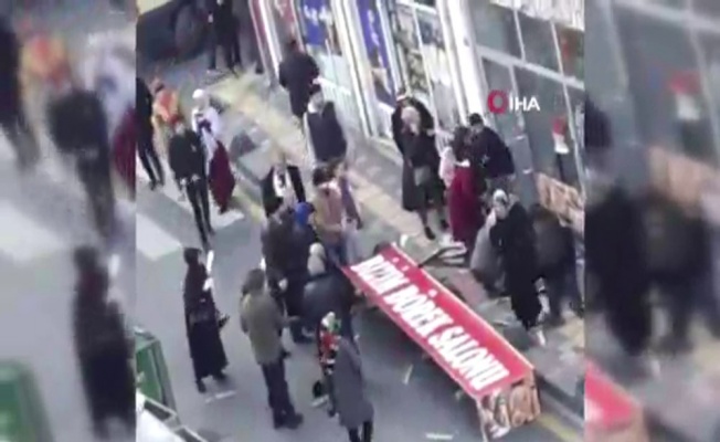 İstanbul Esenler’de bir iş yerinin önünde dururken üzerlerine tabela düşen 4 kişi yaralandı.