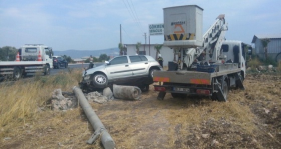 Didim’de kontrolden çıkan otomobil elektrik direğine çarptı: 2 yaralı