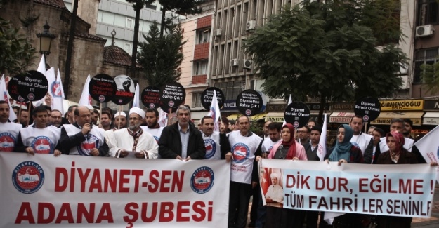 Diyanet İşleri Başkanlığı görevlileri tarafından verildiği iddia edilen bir fetva nedeniyle tepkilerin odağı olan din görevlileri, Türkiye genelinde eylem yapma kararı aldı. Adana’daki din görevlileri de Kemeraltı Camii önündeki 5 Ocak Meydanı’nda toplanarak "Diyanetime Dokunma- Diyanetine Sahip Çık" eylemi yaptı. Grup adına basın açıklamasını okuyan Diyanet-Sen Adana Şube Başkanı Veysel Akkoç, Diyanet İşleri Başkanlığı’na yapılan saldırılara karşı olduklarını tek dil ve söylemle dünyaya duyurmak için bir arada olduklarını kaydetti. Diyanet’e dair kirli söz söyleyenleri, dinden imandan ve ahlaktan yoksun insanlar olarak nitelendirdiklerini belirten Akkoç, şöyle konuştu: