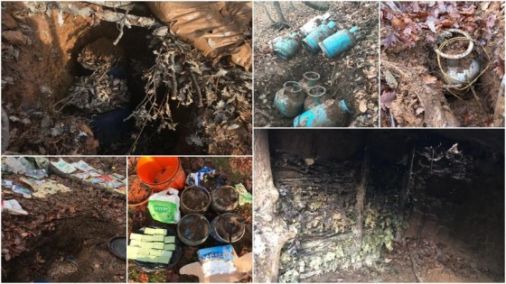 Operasyonda kış üslenmesi amacıyla teröristlerce kullanılan, biri 45 metrekare büyüklüğünde, 2 oda ve mutfaktan oluşan sığınak olmak üzere toplam 3 dolu kış sığınağı ve avcı boy çukurunun tespit edilmesinin ardından kullanılamaz hale getirildiği ifade edilen açıklamada, arama faaliyetlerinde sığınaklar ile toprağa gömülü vaziyette bulunan malzemelere ilişkin şunlar kaydedildi: