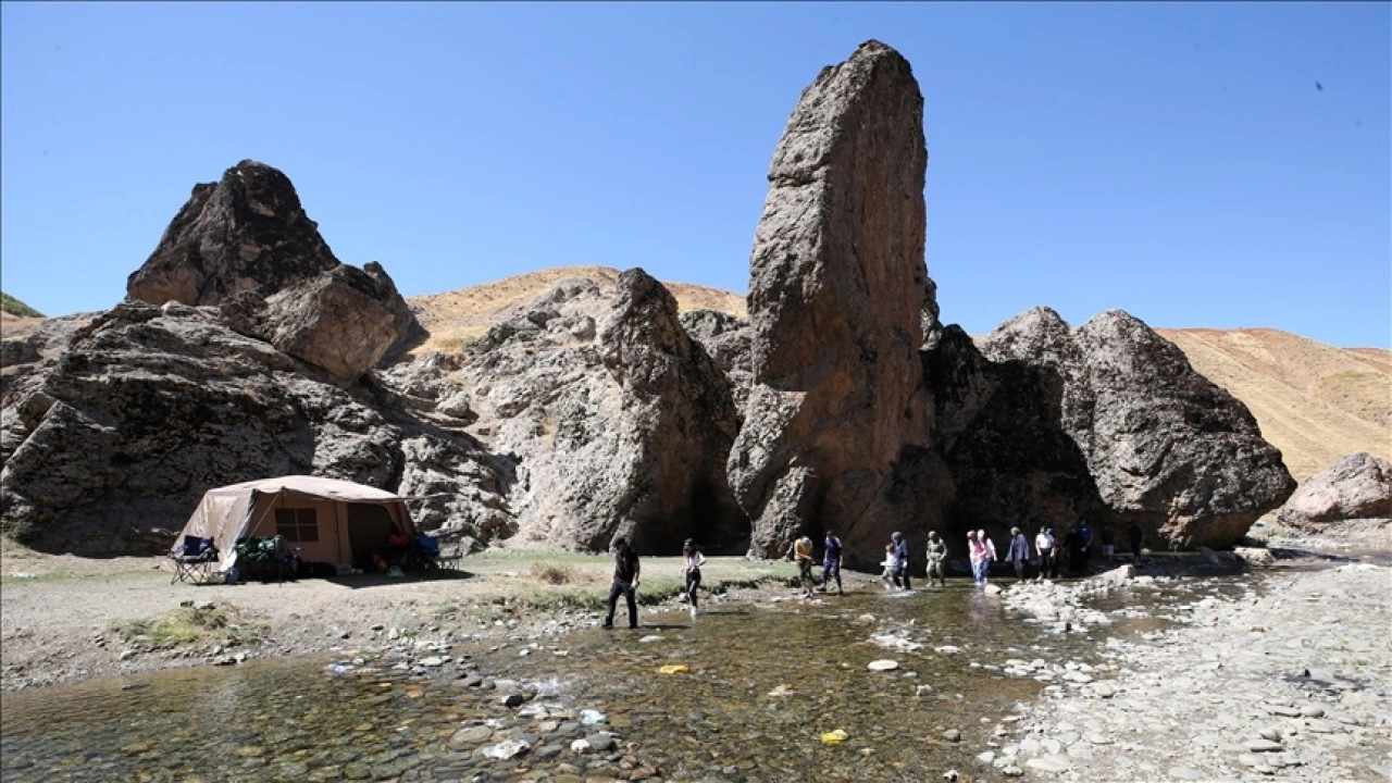 Sarp kayalıklarla çevrili kanyona gelen doğaseverler, yürüyüş yaparak hem doğayla iç içe zaman geçirdi hem de berrak suya girerek serinleme fırsatı buldu.