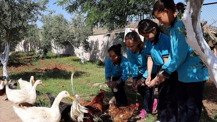 Gaziantep'in kırsal kesimindeki Bayramlı Mahallesi'nde ilk ve ortaokul öğrencilerine kitap, doğa ve hayvan sevgisi uygulamalı öğretiliyor.