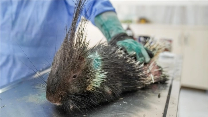 Doğada baygın halde bulunan yaralı oklu kirpi tedavi ediliyor