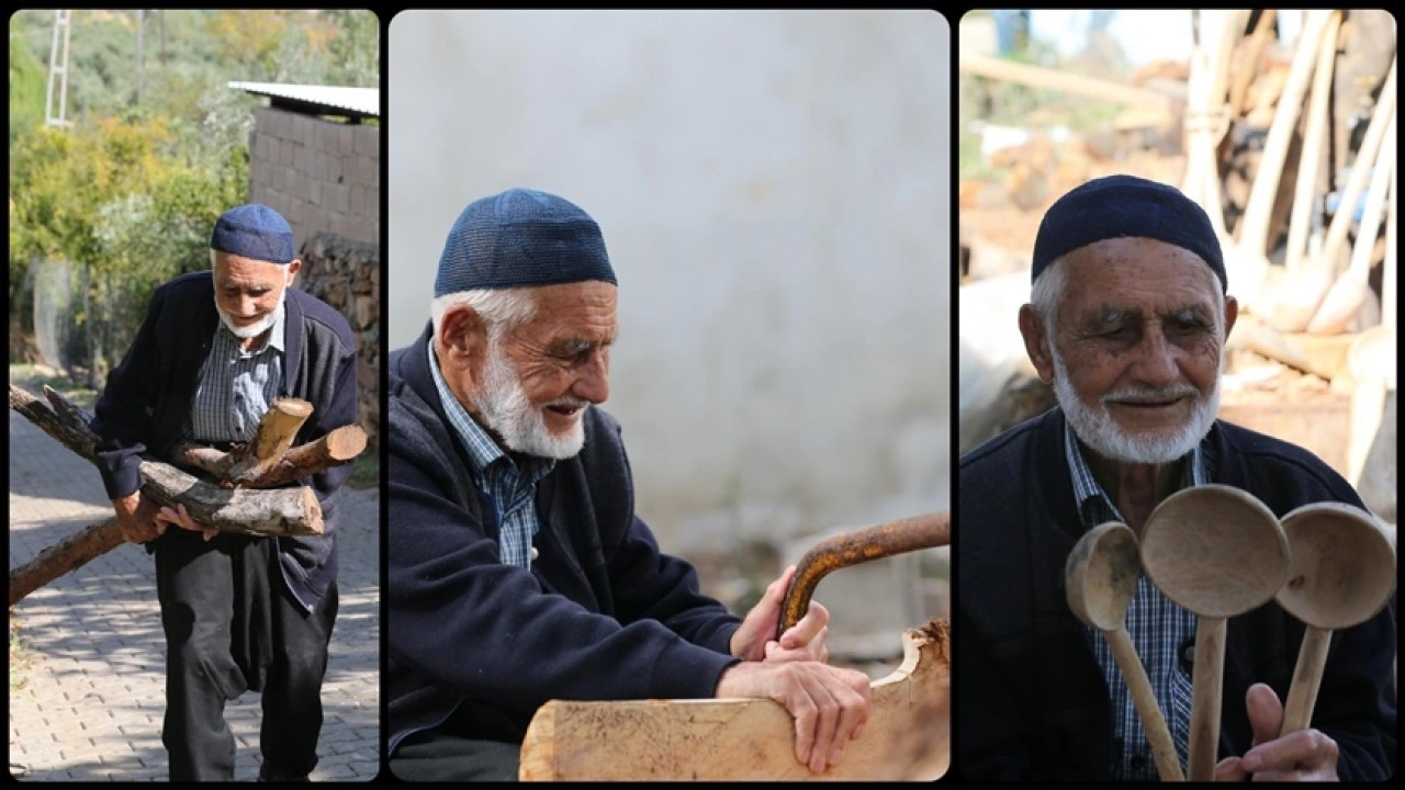 Hatay'ın Kırıkhan ilçesinde yaşayan 85 yaşındaki Ahmet Eden, dağdan topladığı ağaç dallarını 69 yıldır kaşığa dönüştürüyor.
