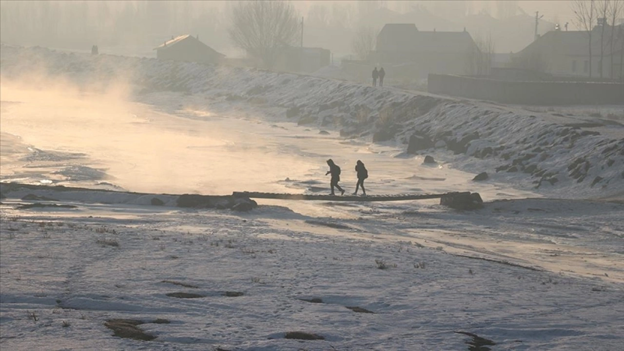 Gece hava sıcaklığının sıfırın altında 17 derece ölçüldüğü Ağrı'da, nehir ve derelerin yüzeyi buzla kaplandı.