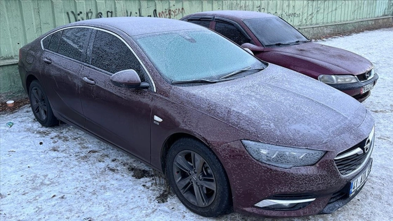 Nehir ve derelerin buz tuttuğu şehirde, araçların camları dondu.