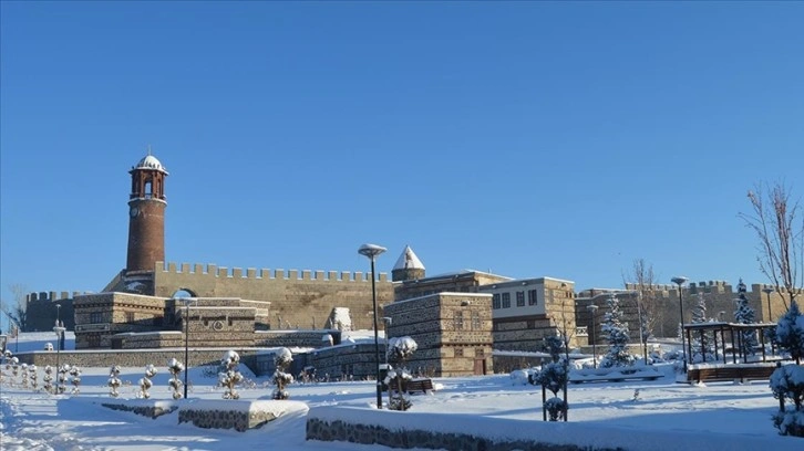 Karla kaplanan kentin tarihi yapılarında da güzel manzaralar oluştu.